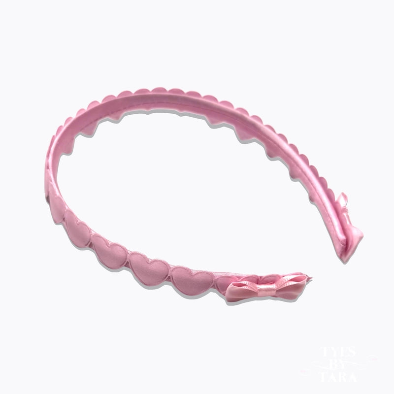 Add a touch of romance to your style with the Sweetheart Tyeraâ˘, a pink heart headband from the Sweetheart Collection, designed to capture both elegance and charm. This satin headband is delicately adorned with handcrafted satin hearts and finished with a graceful tye detail, creating a look that is as timeless as it is playful.