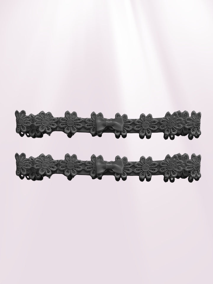 Indulge in the alluring charm of the Blossom Black Legtyes™ flower leg garters from the Blossom Collection. These flirty, adjustable garters feature an elegant black daisy-inspired design paired with soft elastic straps and a handcrafted satin tye, creating a striking yet graceful accessory that elevates any look.
